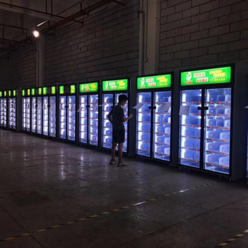 A cabinet of 30 pallets, each weighing independently. Replenishment in bulk, settlement in bulk Open the door by scanning the code, and settle according to the weight after picking up the goods. Fresh food will be automatically discounted after 7:00 every day and sold at a reduced price. It supports RFID payment, color screen price tag, remote control of freezer temperature, remote upgrade, remote power off, remote light off and color temperature adjustment. It is used for selling fresh food during the epidemic and non-contact distribution.